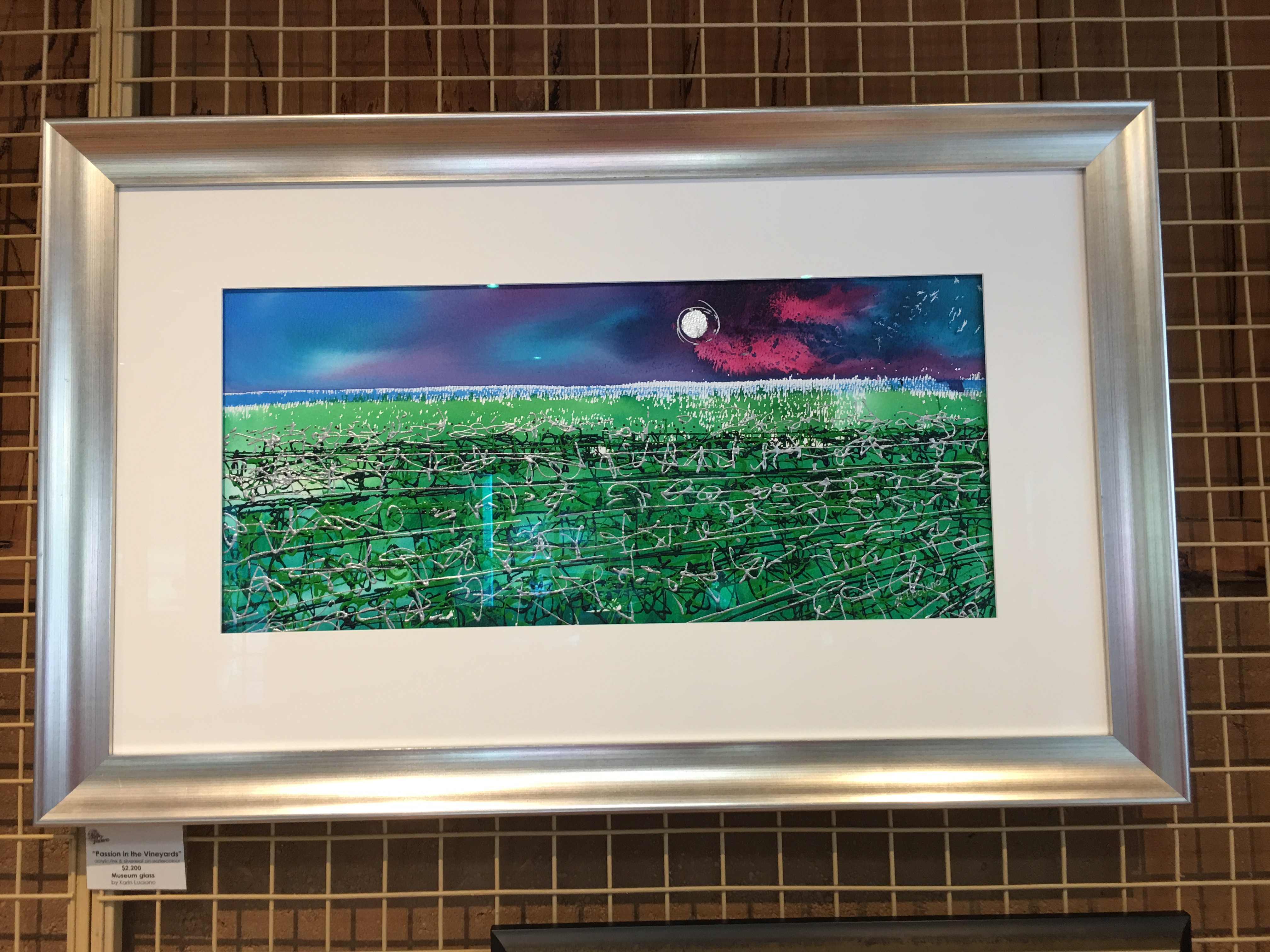 The gallery showcases the paintings of the well-known Margaret River artist Karin Luciano. One could call her the ‘Artist in residence’, as she has the use of a painting studio in the gallery and does gallery duty once a week on a Sunday. Karin is also represented by the Jahroc Gallery in Margaret River. I was lucky enough to have a chat with her. On learning that I am a Trainee Gallery Guide at AGWA, Karin graciously welcomed me into her gallery-studio and happily answered my questions about her artistic background and her creating processes.